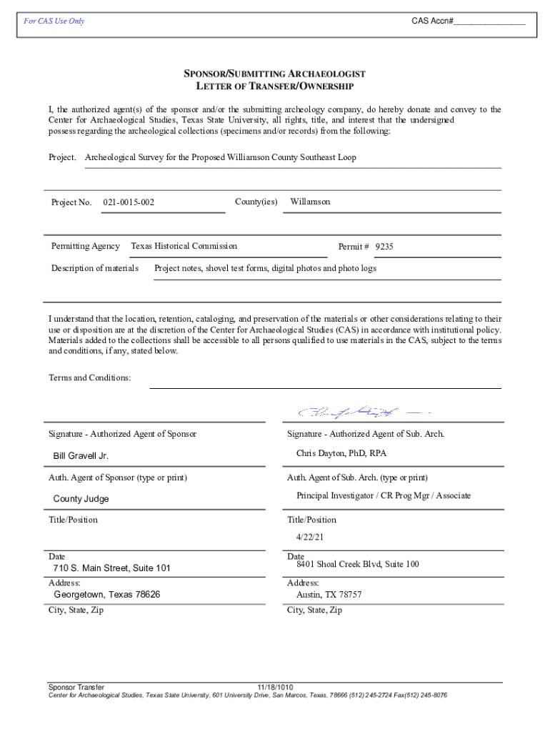 CAS ACC#___For CAS Use OnlySPONSOR/SUBMITTING ARCHAEOLOGIST