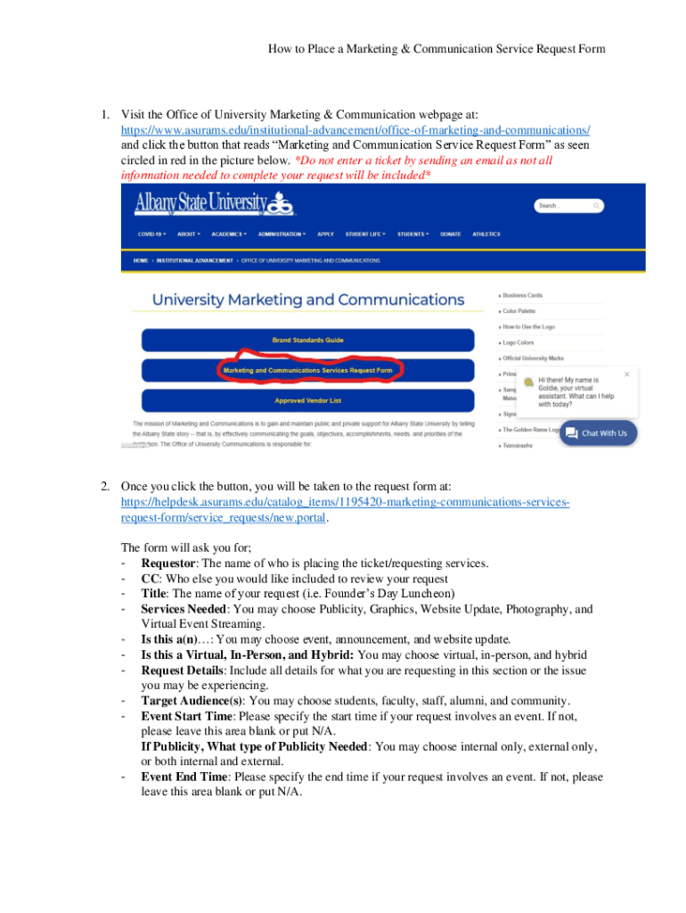 Get the free How to Place a Marketing & Communication Service Request Form ...
