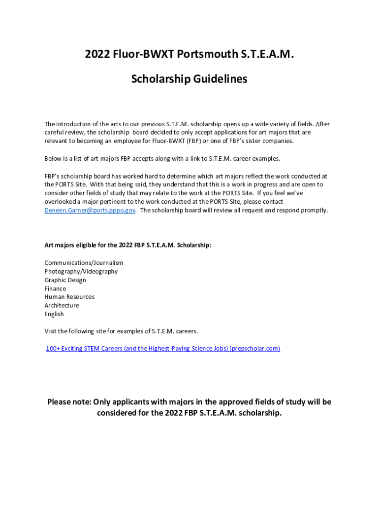 Scholarship Guidelines introduction of the arts to our previous S.T.E.M. scholarship opens up a wide variety of fields. After