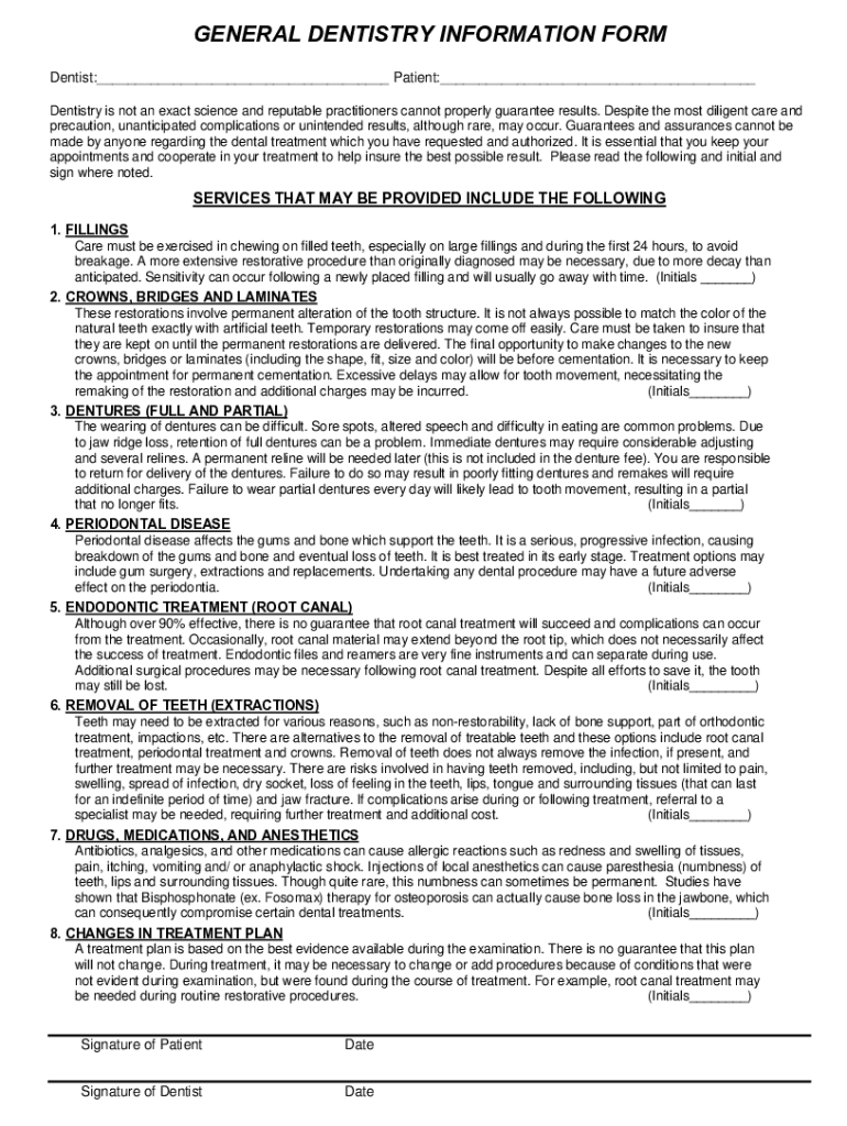 General dentistry consent form is a document that patients sign to give permission for dental treatment.