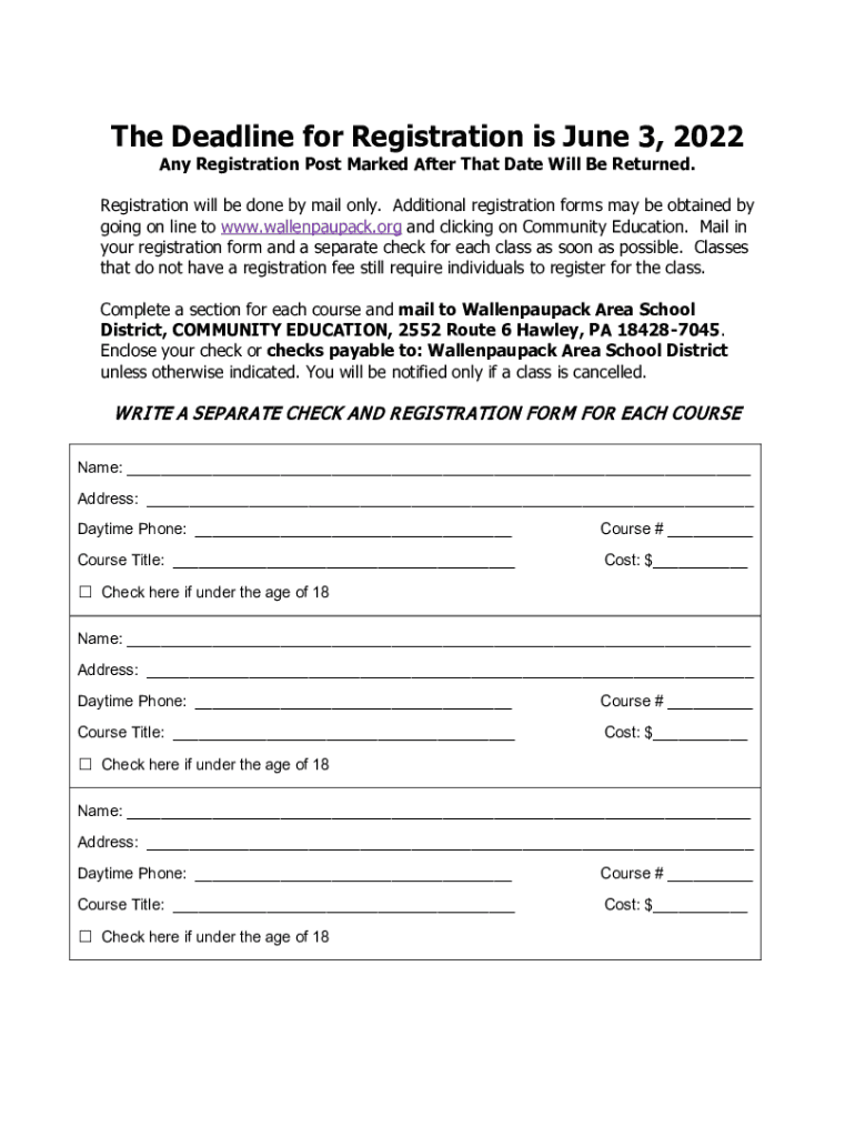 The Deadline for Registration is June 3, 2022, Any Registration Post Marked After That Date Will Be Returned. Registration will be done by mail only. Additional registration forms may be obtained