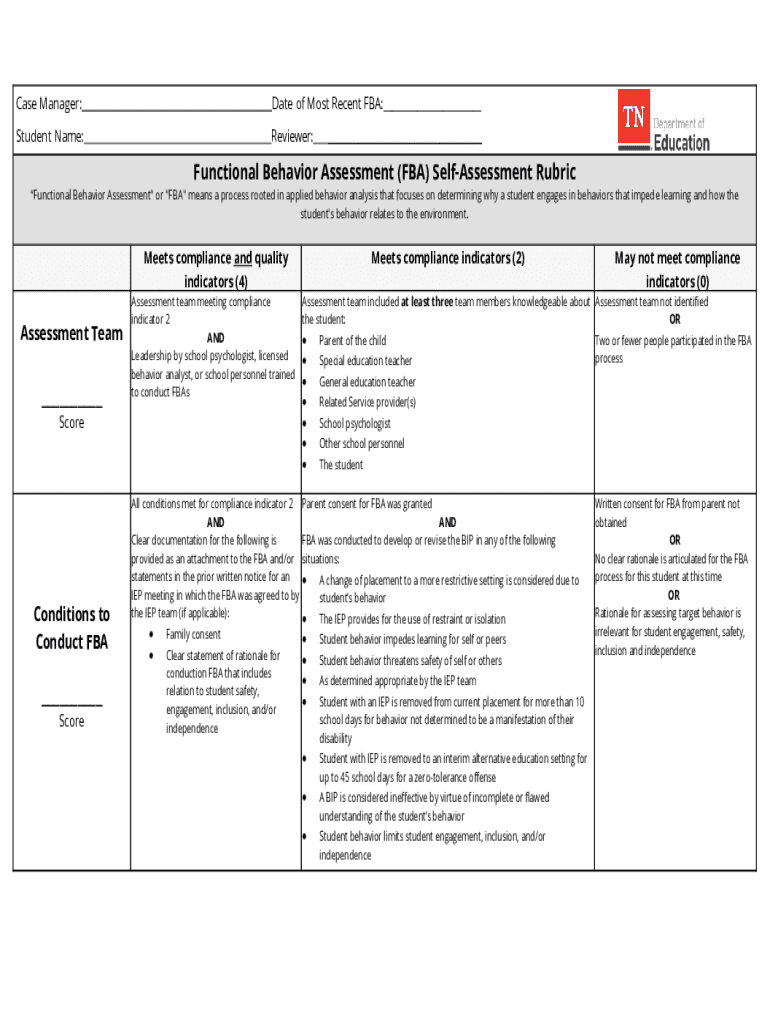Get the free Functional Behavior Assessment (FBA) Self-Assessment Rubric