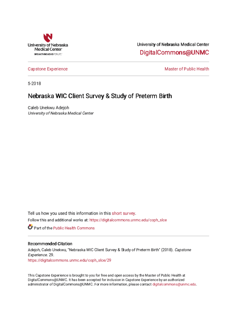 University of Nebraska Medical CenterDigitalCommons@UNMC Capstone Experience Master of Public Health52018Nebraska WIC Client Survey & Study of Preterm Birth Caleb Unique DeJoy University of Nebraska