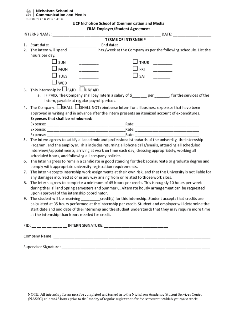 F I LM INTERNSHIP REGISTRATION PACKETInternshipsInternships are often the beginning of successful careers for students. Most internships are taken for academic credit and the academic department provides