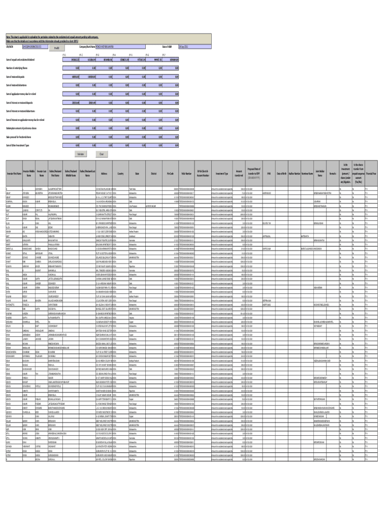 Note: This sheet is applicable for uploading the particulars related to the unclaimed and unpaid amount pending with company. Make sure that the details are in accordance with the information already