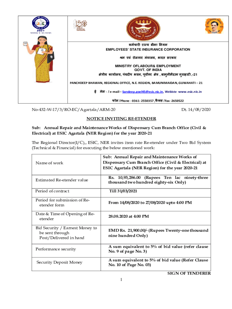 EMPLOYEES STATE INSURANCE CORPORATION, MINISTRY OFLABOUR& EMPLOYMENT GOVT. OF INDIA, ,,, 21 SANDEEP SHAWN, REGIONAL OFFICE, N.