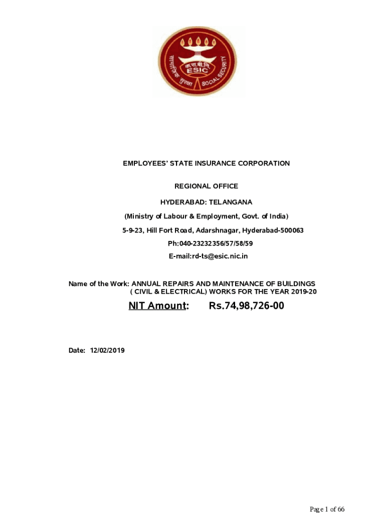 EMPLOYEES STATE INSURANCE CORPORATION REGIONAL OFFICE HYDERABAD: TELANGANA (Ministry of Labor & Employment, Govt. of India) 5923, Hill Fort Road, Adarshnagar, Hyderabad500063 pH:04023232356/57/58/59
