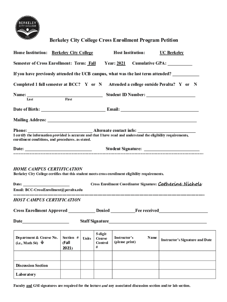 Berkeley City College Cross Enrollment Program Petition