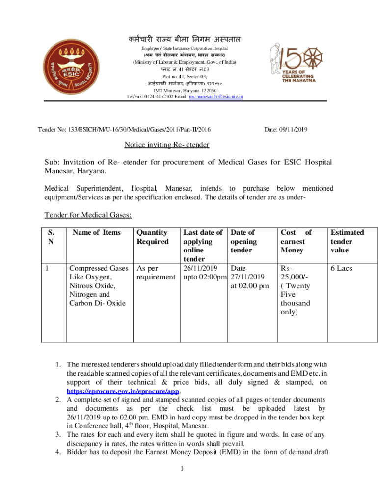 Get the free Notice inviting Re - ESIC