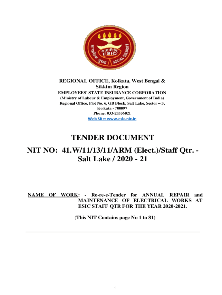 REGIONAL OFFICE, Kolkata, West Bengal & Sikkim Region EMPLOYEES\' STATE INSURANCE CORPORATION (Ministry of Labor & Employment, Government of India) Regional Office, Plot No. 6, GB Block, Salt Lake,