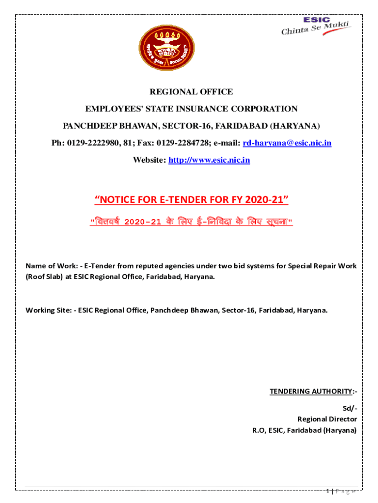 REGIONAL OFFICE EMPLOYEES\' STATE INSURANCE CORPORATION SANDEEP SHAWN, SECTOR16, FARIDABAD (HARYANA) pH: 01292222980, 81; Fax: 01292284728; email: rdharyana@esic.nic.in Website: http://www.esic.nic.inNOTICE