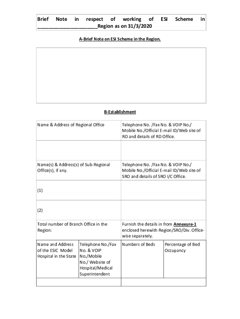 Get the free Brief Note in respect of working of ESI Scheme ...