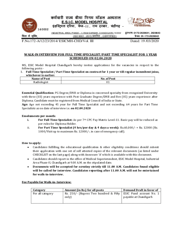 Get the free Employees State Insurance Corporation Model Hospital ...