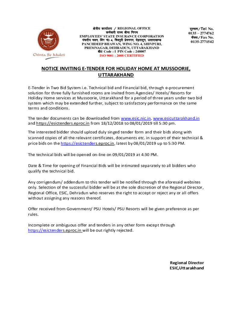 Get the free NOTICE INVITING E-TENDER FOR HOLIDAY HOME AT ...