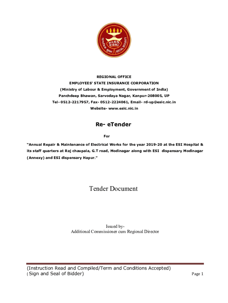 Get the free Annual Repair & Maintenance of Electrical Works for the year 2019-20 at the ESI ...