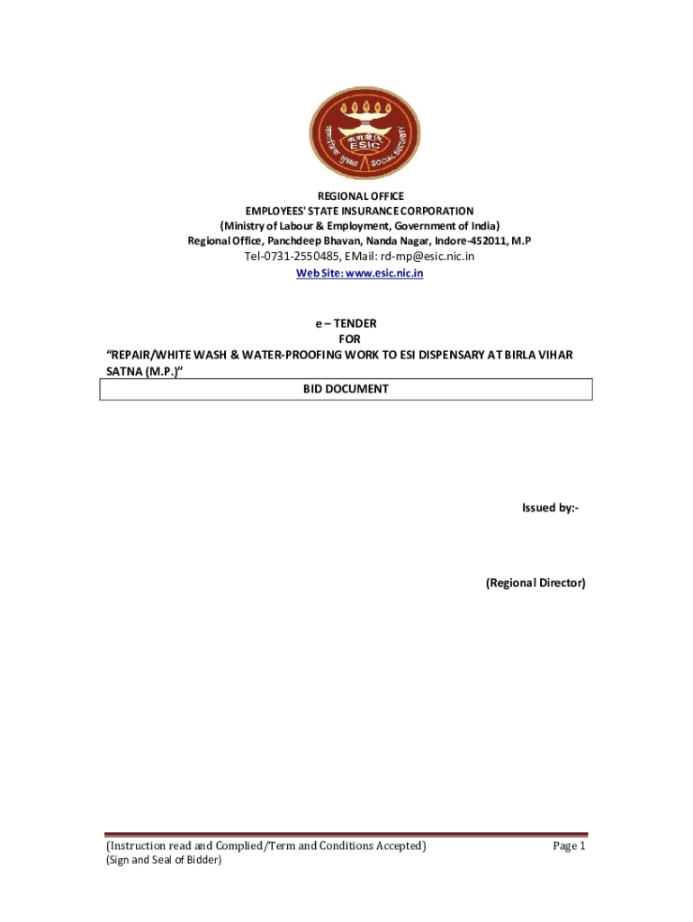 REGIONAL OFFICE EMPLOYEES\' STATE INSURANCE CORPORATION (Ministry of Labor & Employment, Government of India) Regional Office, Sandeep Haven, Wanda Nagar, Indore452011, M.PTel07312550485, Email: rdmp@esic.nic.in