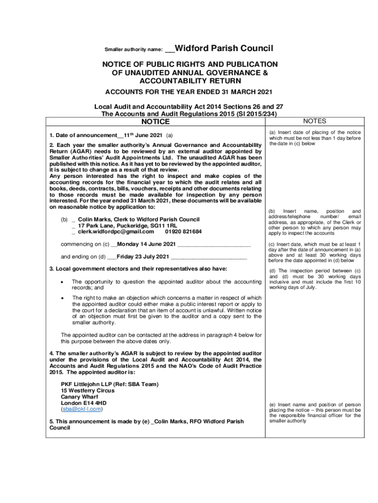 Get the free Notice Of Public RightsSwinbrook & Widford Parish Council