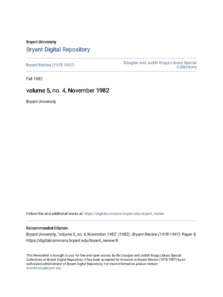 Bryant University Bryant Digital Repository Bryant Review (19781997)Douglas and Judith Krupp Library Special CollectionsFall 1982volume 5, no. 4, November 1982 Bryant UniversityFollow this and additional
