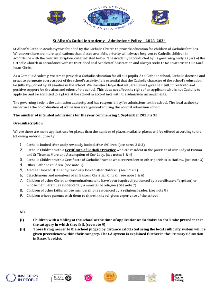 St Albany Catholic Academy Admissions Policy 20232024 St Albany Catholic Academy was founded by the Catholic Church to provide education for children of Catholic families. Whenever there are more