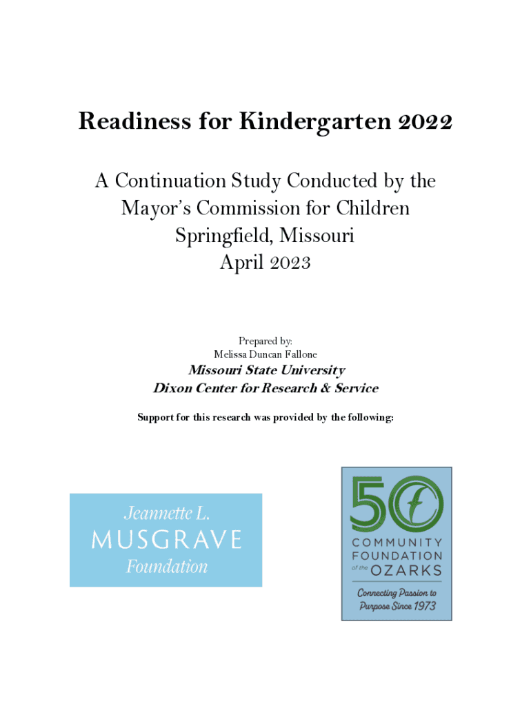 Readiness for Kindergarten 2022 A Continuation Study Conducted by the Mayors Commission for Children Springfield, Missouri April 2023Prepared by: Melissa Duncan FalloneMissouri State University Dixon