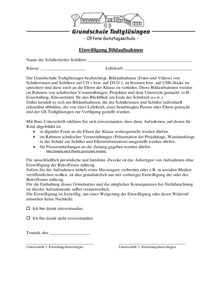 Class: ___Lehrkraft: ___Die Grundschule Todtglsingen beabsichtigt, Bildaufnahmen (Foots UND Videos) on