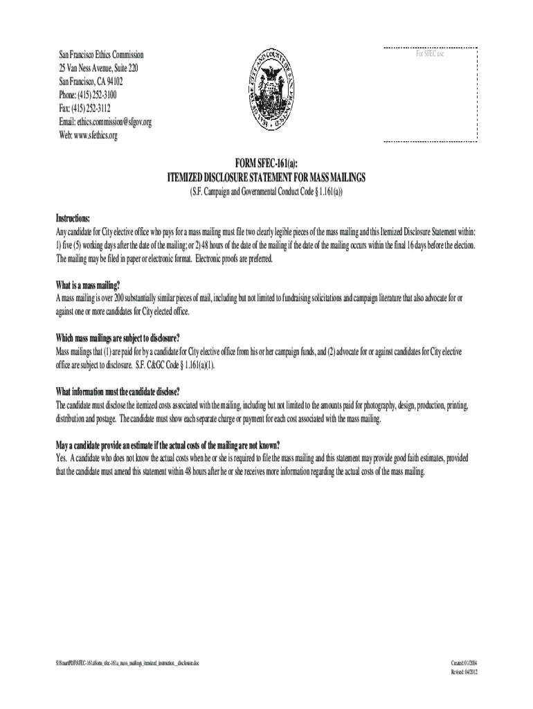 Get the free FORM SFEC-161(a): ITEMIZED DISCLOSURE STATEMENT FOR ...