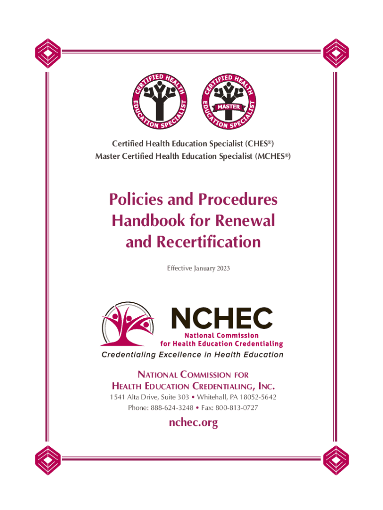 Certified Health Education Specialist (CHEST) Master Certified Health Education Specialist (ACHES)Policies and Procedures Handbook for Renewal and Recertification Effective January 2023NATIONAL COMMISSION