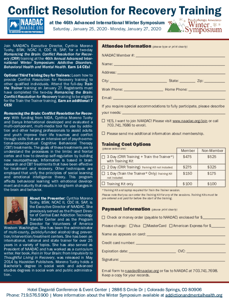 Conflict Resolution for Recovery Training at the 46th Advanced International Winter Symposium Saturday, January 25, 2020, Monday, January 27, 2020, Join NAFDAC\'s Executive Director, Cynthia Moreno