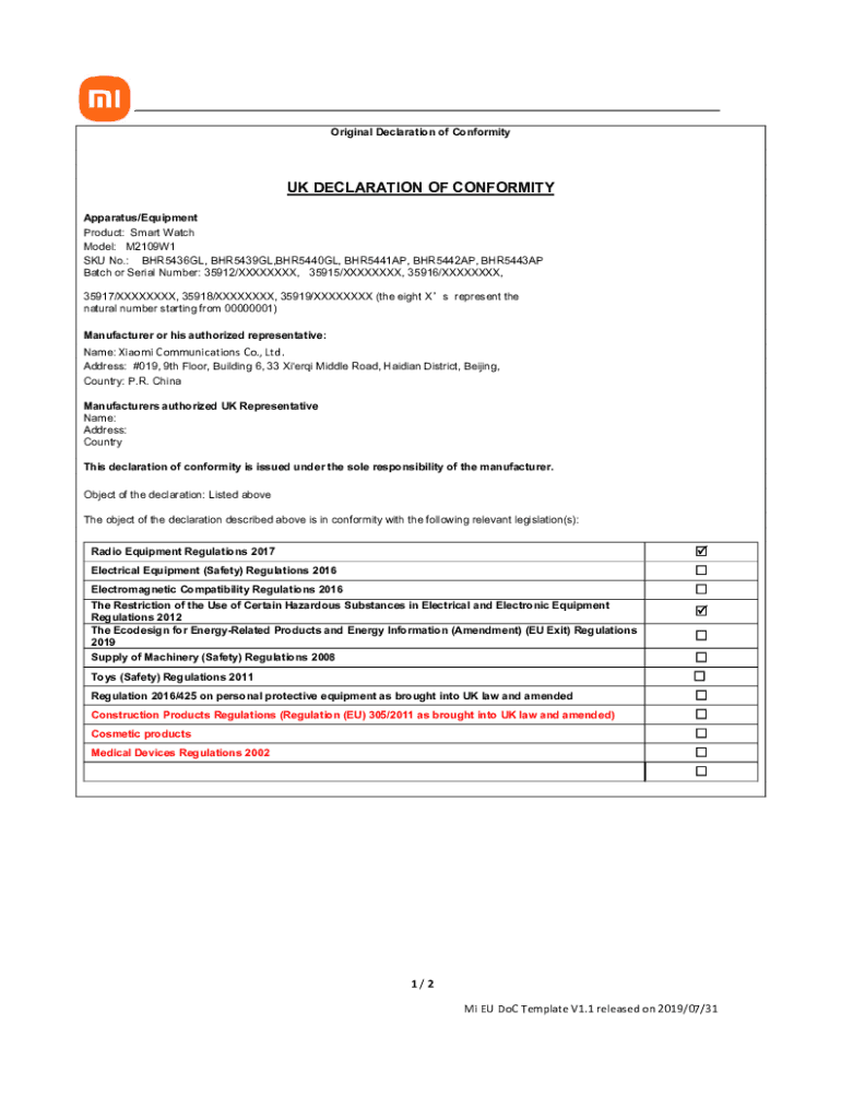 Get the free UK DECLARATION OF CONFORMITY