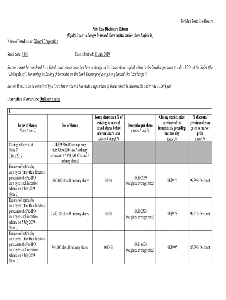 Get the free Name of listed issuer: Xiaomi Corporation