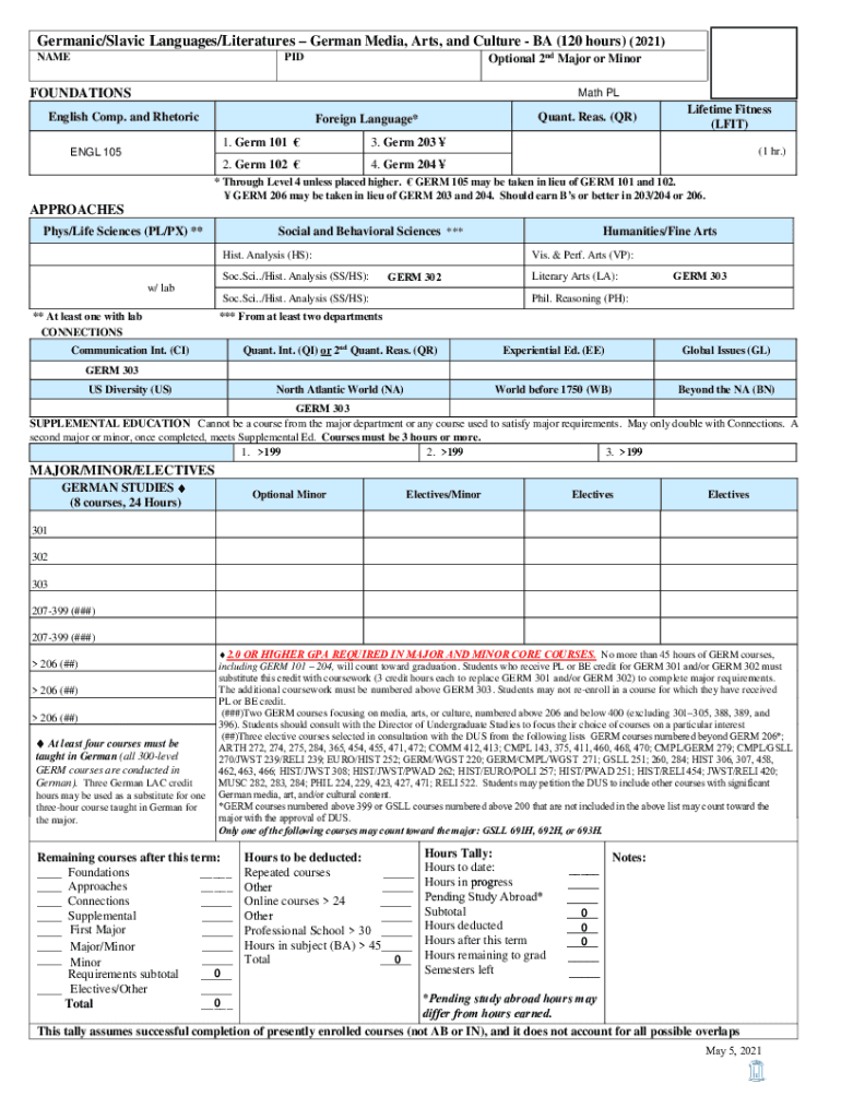 Germanic/Slavic Languages/Literatures German Media, Arts, and Culture BA (120 hours) (2021)