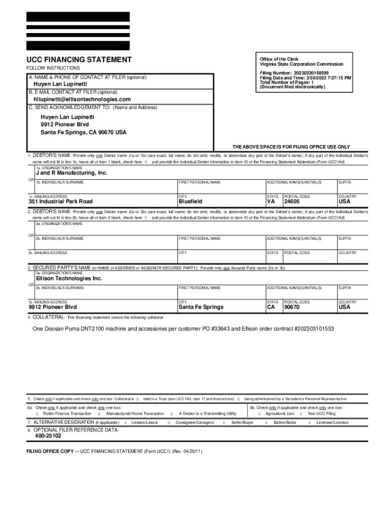 Virginia State Corporation CommissionFOLLOW INSTRUCTIONSFiling Number: 20230330168599