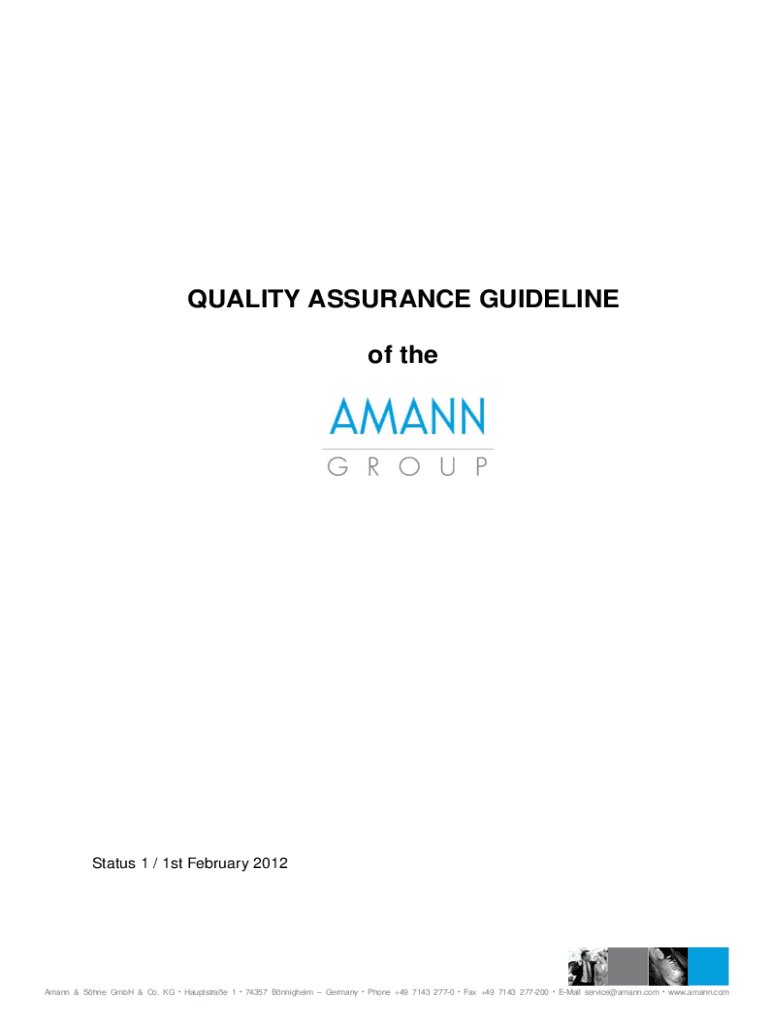 QUALITY ASSURANCE GUIDELINE of testates 1 / 1st February 2012Amann & She GmbH & Co. KG Hauptstrae 1 74357 Boniface Germany Phone +49 7143 2770 Fax +49 7143 277200 Email service@amann.com www.amann.comTable