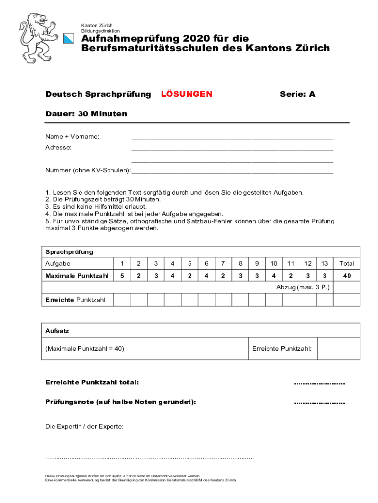 Berufsmaturittsschulen DES Cantons ZrichDeutsch SprachprfungLSUNGENSerie: Adler: 30 Minutes