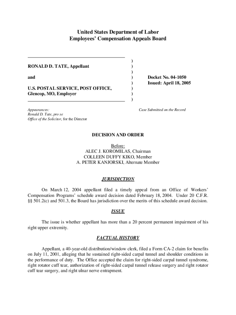 Get the free 05-1693: ROCHELL TATE and U.S. POSTAL SERVICE, PO...