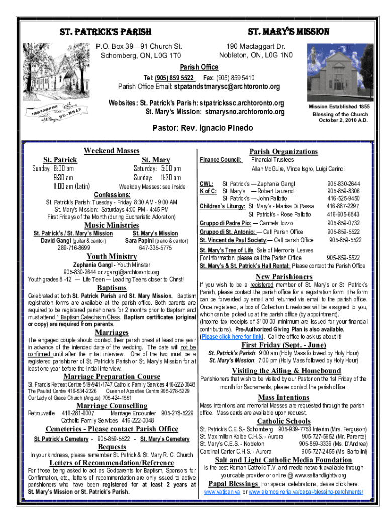 Get the free Bulletins - St. Patrick's Parish, Schomberg
