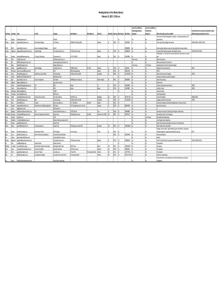 February 15, 2023 | 11:00 a.m. First Nameless NameEmailJob TitleCompanyWork Address 1Erin