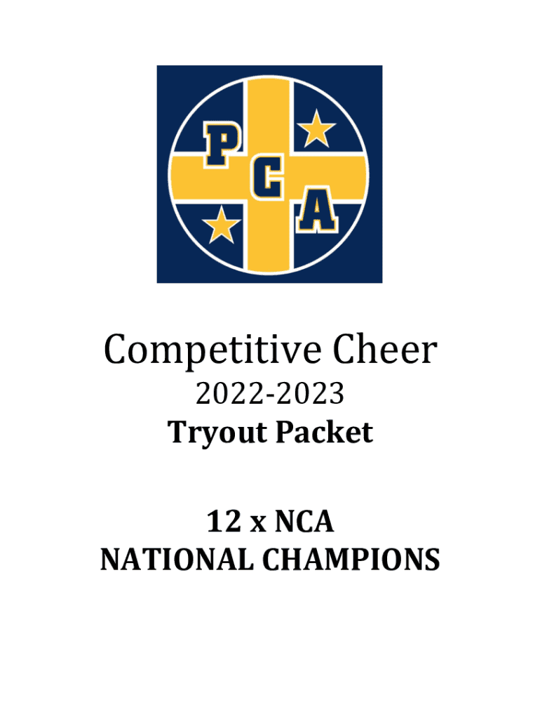 Competitive Cheer 20222023 Tryout Packet 12 x NCA NATIONAL CHAMPIONSHIP OUT TRYOUT REGISTRATION FORM ONLINE UNDER COMP CHEER TONIGHT 2/17 TO GET CREDIT FOR BEING AT MEETING AND SO YOU ARE REGISTERED