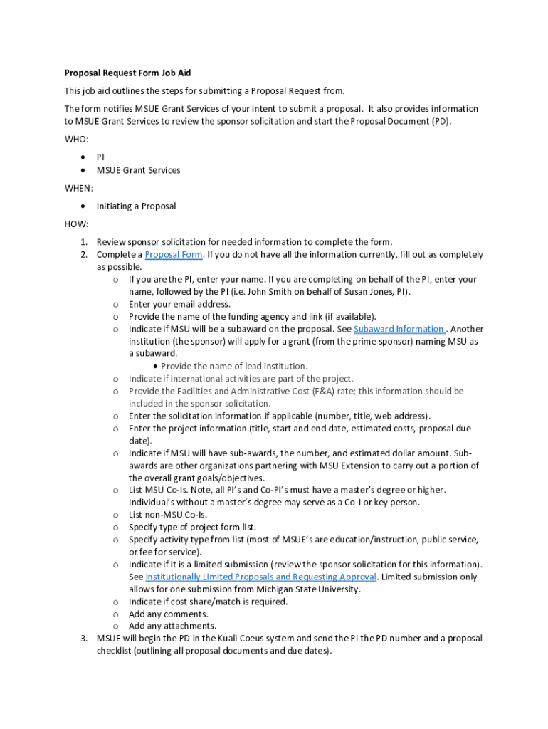 Get the free Proposal Request Form Job Aid This job aid outlines the steps for ...