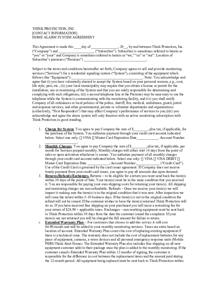 Get the free Home Alarm System Agreement