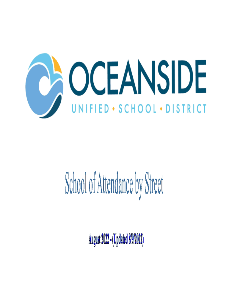 Guidelines for Using the Street Listings * The listings are alphabetized by street name. * School abbreviations key is listed below. * Many portions of the City of Oceanside are not within the boundaries