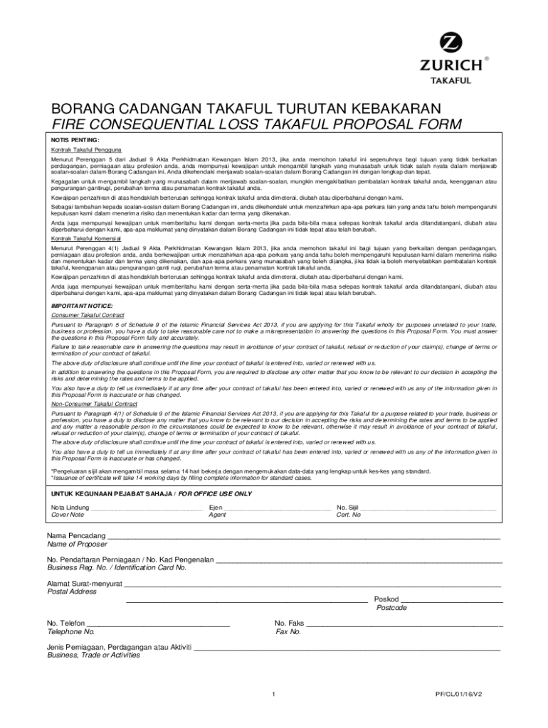 FIRE CONSEQUENTIAL LOSS TACTFUL PROPOSAL FORM