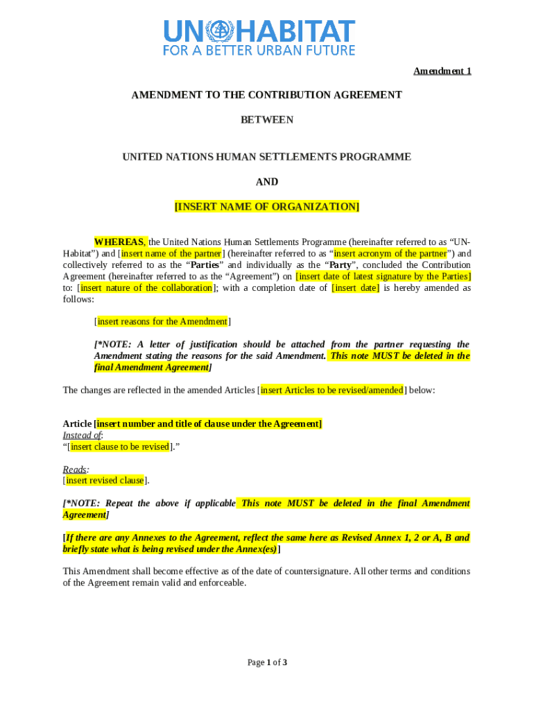Amendment to Contribution Agreement Template - Habnet - habnet unhabitat template instructions