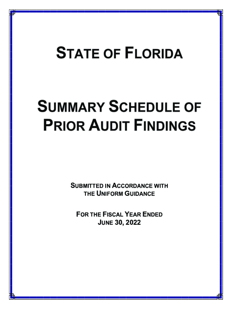SUBMITTED IN ACCORDANCE WITH THE UNIFORM GUIDANCE FOR THE FISCAL YEAR ENDED JUNE 30, 2022STATE OF FLORIDA SUMMARY SCHEDULE OF PRIOR AUDIT FINDINGSSUBMITTED IN ACCORDANCE WITH THE UNIFORM GUIDANCE