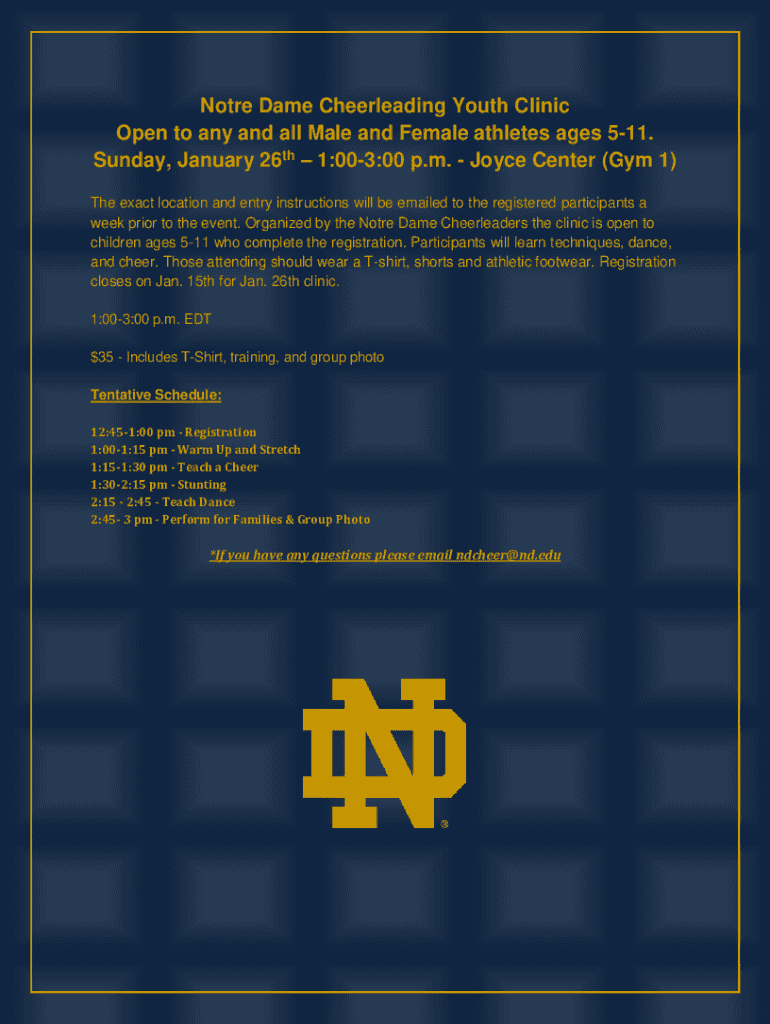 Get the free Notre Dame Cheerleading Youth Clinic Registration Form