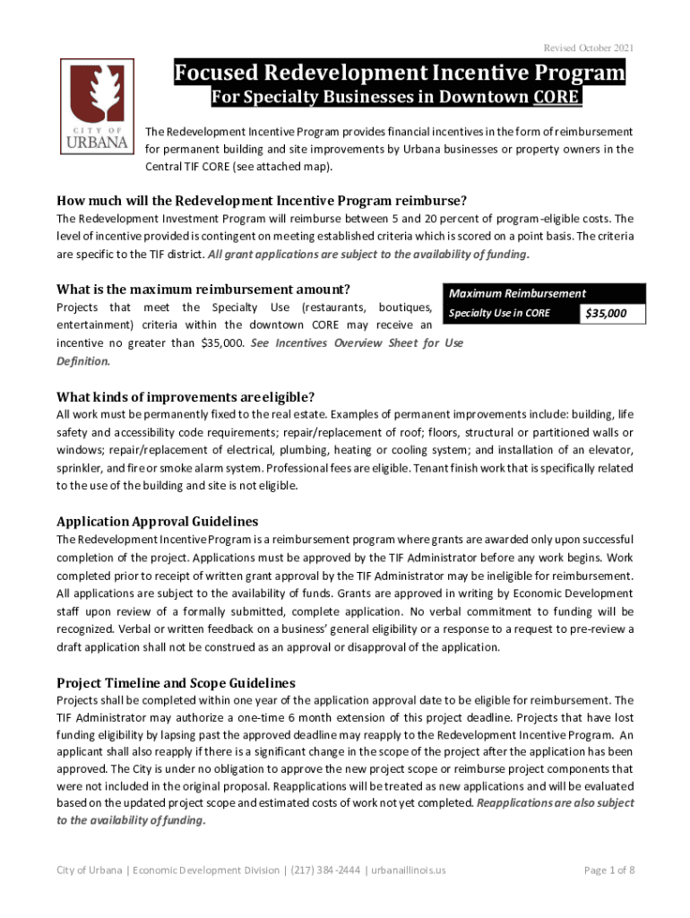 Revised October 2021Focused Redevelopment Incentive Program For Specialty Businesses in Downtown Crete Redevelopment Incentive Program provides financial incentives in the form of reimbursement for