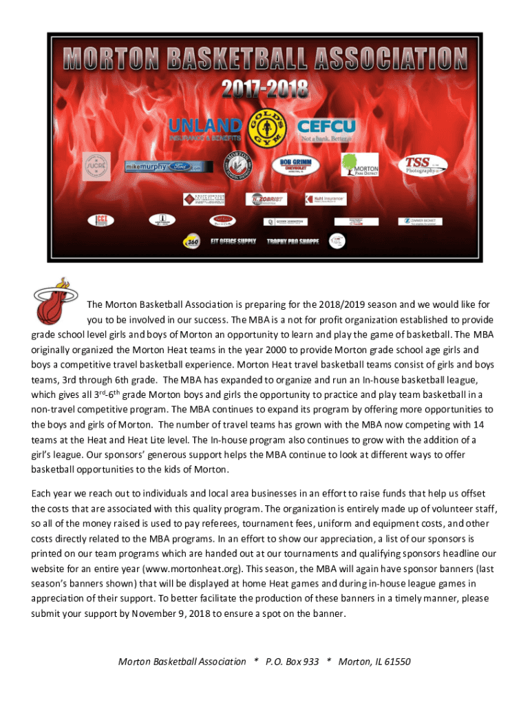 The Morton Basketball Association is preparing for the 2018/2019 season, and we would like for you to be involved in our success. The MBA is a not for profit organization established to provide grade