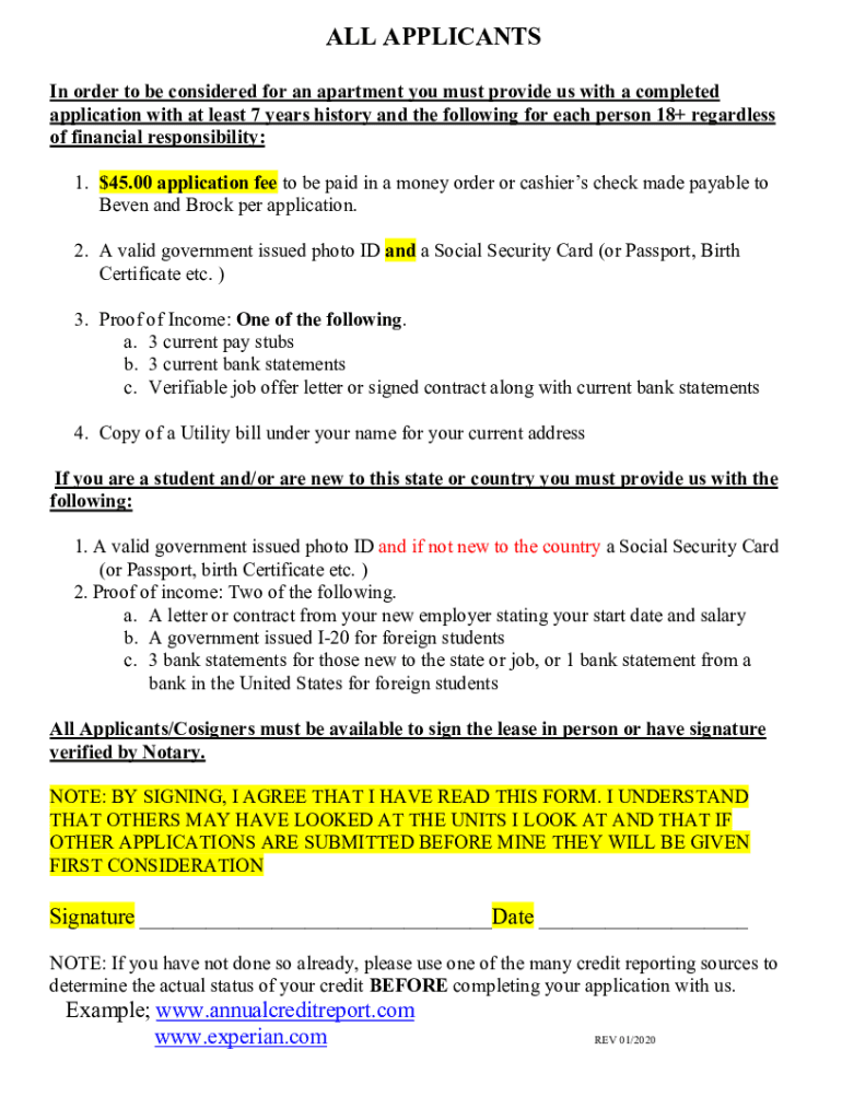 ALL APPLICANTS In order to be considered for an apartment you must provide us with a completed application with at least 7 years history and the following for each person 18+ regardless of financial