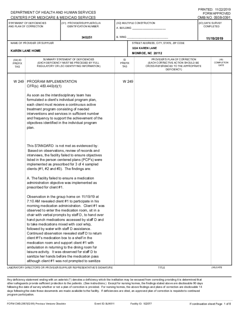PRINTED: 11/22/2019 FORM APPROVEDDEPARTMENT OF HEALTH AND HUMAN SERVICES CENTERS FOR MEDICARE & MEDICAID SERVICES STATEMENT OF DEFICIENCIES AND PLAN OF CORRECTION(X1) PROVIDER/SUPPLIER/CIA IDENTIFICATION
