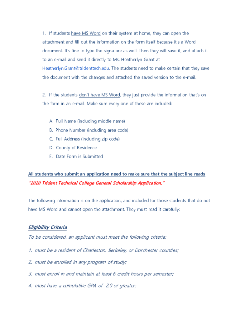 1. If students have MS Word on their system at home, they can open the attachment and fill out the information on the form itself because it's a Word document. It's fine to type the signature as well.